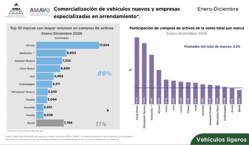 Uno de los indicadores más relevantes fue el desempeño del mercado de flotillas. Durante 2025 se registraron 245,924 unidades adquiridas bajo este esquema, lo que representó 16.1% del mercado total.